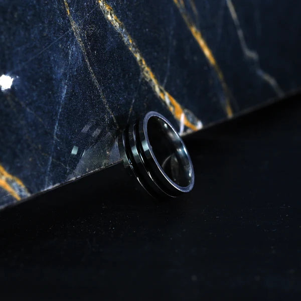 Expertly crafted with a polished double-striped design, this 8mm thick ring blends modern sophistication with timeless appeal. Made from high-quality stainless steel, it’s built to withstand the elements without tarnishing or oxidizing—no matter the climate.
